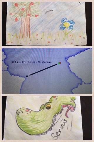 Beim Sommerfest am 17.08.2013 haben wir ganz viele Luftballons in den Himmel geschickt und wir waren sehr gespannt, wohin sie vom Wind getrieben wurden... schon heute kamen die ersten beiden Karten an: über 300km von der Pfalz nach Bayern sind sie geflogen. Wir waren total fasziniert.....