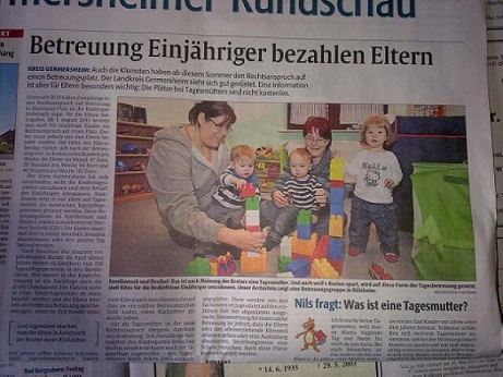 Für die Tagesmütter ist der neue Rechtsanspruch übrigens durchaus von Bedeutung: Seit Zweijährige beitragsfrei den Kindergarten besuchen dürfen, werden sie kaum noch zur Tagespflege angemeldet. Der Kreis Germersheim hat gleichzeitig schon viele Jahre auch auf diese Frauen (und wenigen Männern) gesetzt, sie mussten also nicht extra wegen der neuen Rechtslage ausgebildet werden.