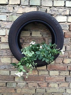 ....haben wir die Regenpausen kurz genutzt, und mit den Kindern unsere Autoreifen bepflanzt. Die hängen nun an der alten Scheune und warten darauf, mal ein bisschen Sonne abzukriegen...